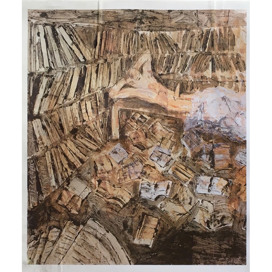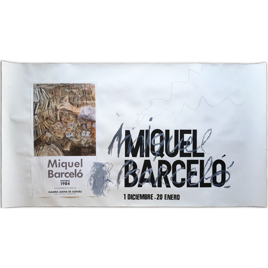 Collage, pintura e impresión sobe cartón. Trabajo original y único de Barceló que anunciaba la exposición que se presentó en diciembre de 1984 en la Galería Juana de Aizpuru de Madrid. (Con certificado de la galería)