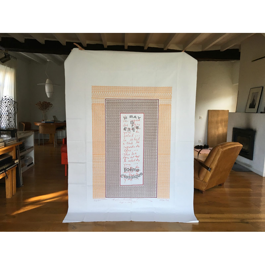 Serigrafía en color sobre tela. Firmada y numerada a mano por Chopin (20/35). Plegada