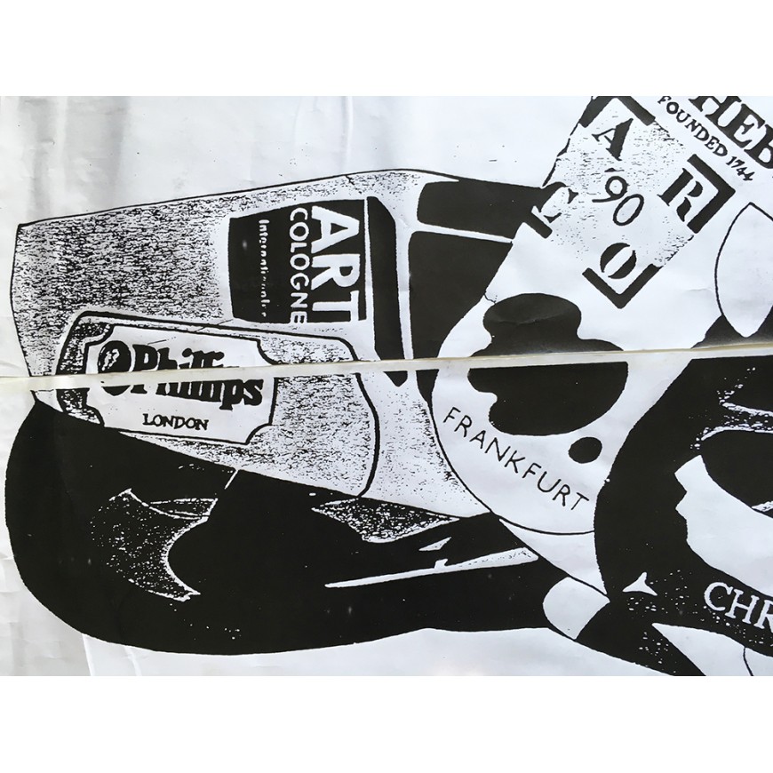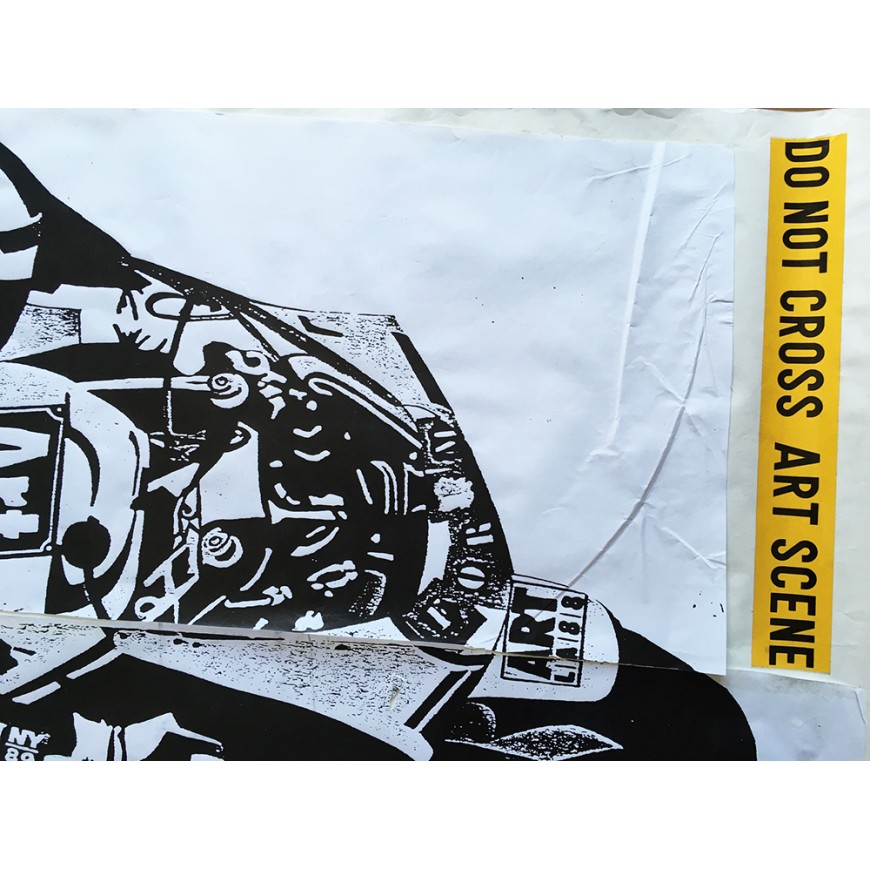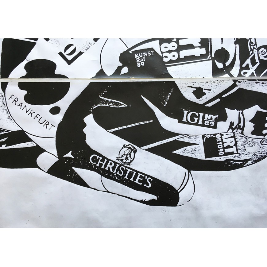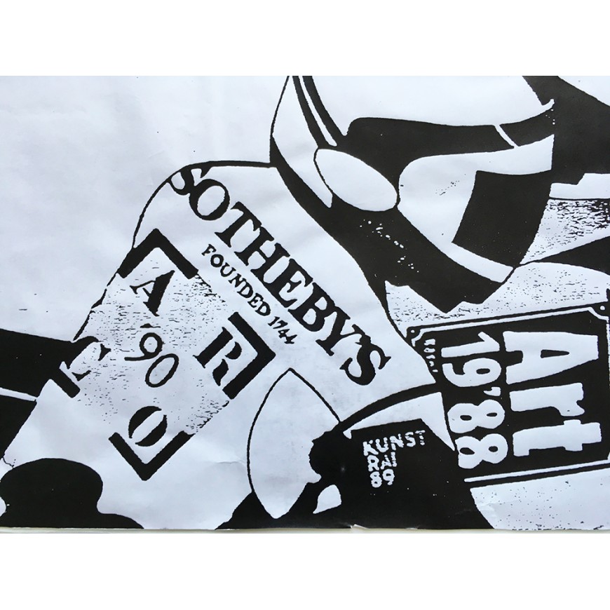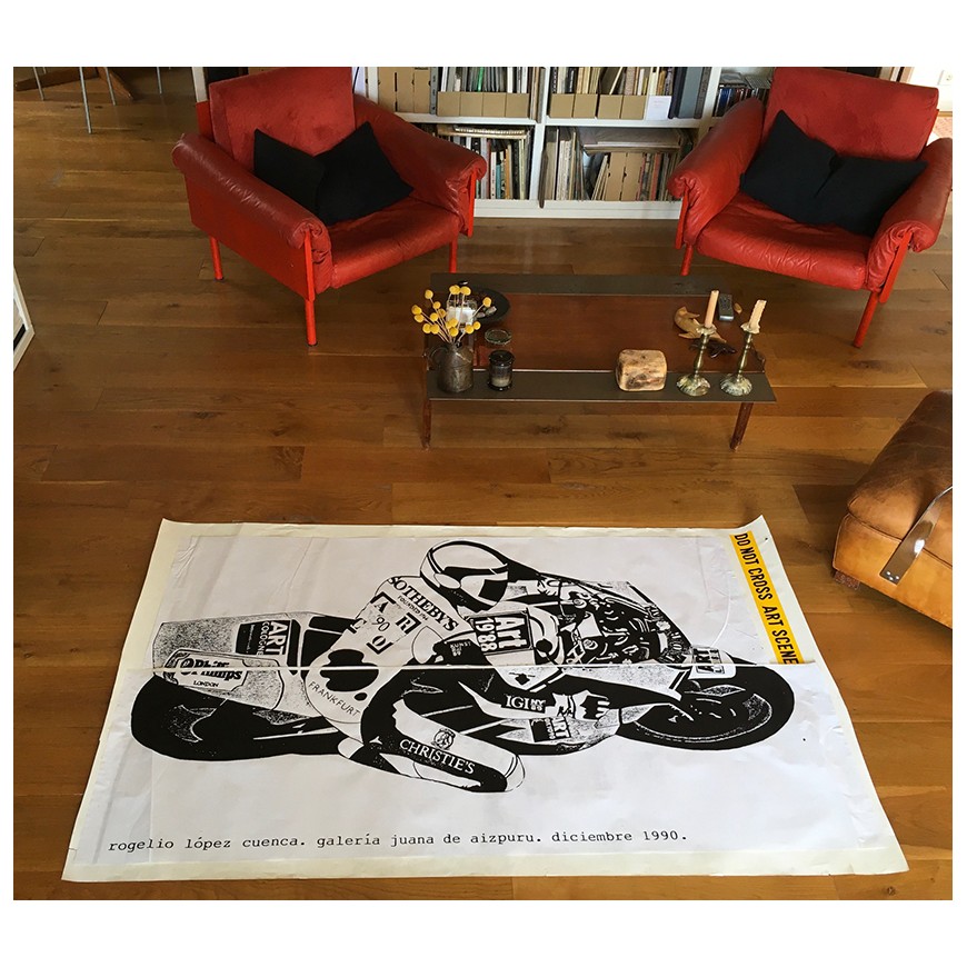 Impresión y collage sobe cartón. Trabajo original y único de López Cuenca que anunciaba la exposición que se presentó en diciembre de 1990 en la Galería Juana de Aizpuru de Madrid. (Con certificado de la galería)